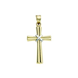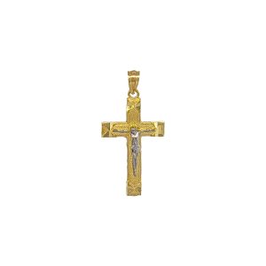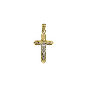 14K Two-Tone Diamond Cut Fancy Cross- Medium