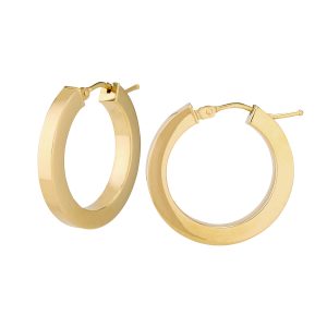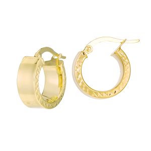 14K Yellow Gold Polished Hoop with Diamond Cut Textured Side