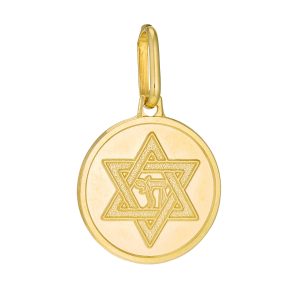 14K Yellow Gold Star of David Medal with Chai Symbol
