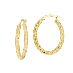 14K Yellow Gold Twisted Ribbon Oval Hoop Earrings