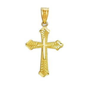 14K Yellow Gold Diamond Cut Fancy Edge Cross