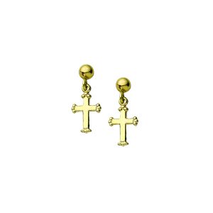 14K Yellow Gold Diamond Cut Bar Cross- Small