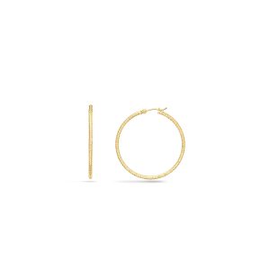 14K Yellow Gold 2X40mm Diamond Cut Textured Hoops