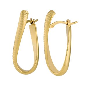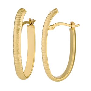 14K Yellow Gold Diamond Cut Texture Flat Band Oval Half Hoops