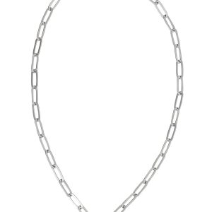 Sterling Silver Rhodium Plated 5.4mm Paperclip Necklace with Hinged Clasp