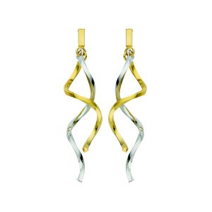 14K Two-Tone Italian Double Swirling Bar Dangling Earring