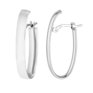 14K White Gold 12x23mm Oval Polished Hinged Back Hoops