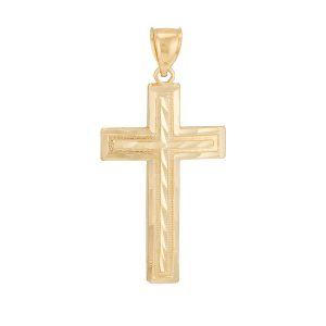 10K Yellow Gold Diamond Cut and Textured Cross - Medium