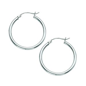 Sterling Silver Rhodium Plated 2X25mm Polished Hoops