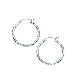 Sterling Silver Rhodium Plated 2X25mm Diamond Cut Hoops