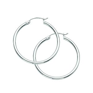 Sterling Silver Rhodium Plated 2X30mm Polished Hoops