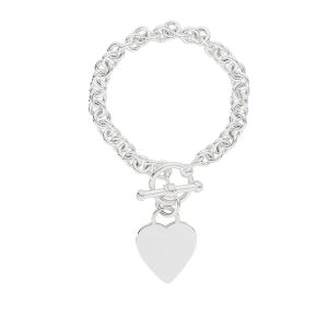 Sterling Silver Semi Solid Toggle Heart Bracelet