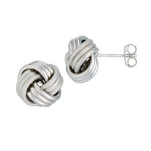 Sterling Silver Rhodium Love Knot: Polished/Florentine 4 Swirl-3 Tube
