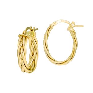 14K Yellow Gold 10x15mm Oval Braided Hoops