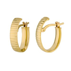14K Yellow Gold 10x15mm Oval Diamond Cut Hinged Back Hoops