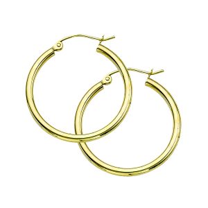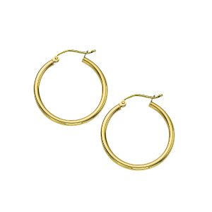 14K Yellow Gold 2X25mm Diamond Cut Hoops