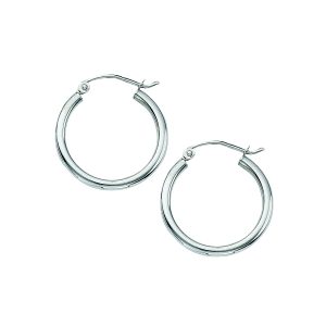14K White Gold 2X25mm Diamond Cut Twisted Hoops