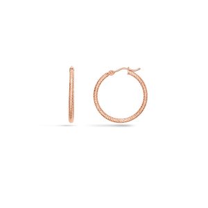 14K Rose Gold 2X25mm Diamond Cut Textured Hoops