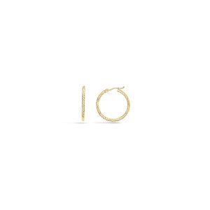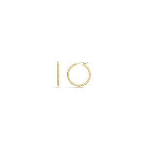 14K Yellow Gold 2X25mm Diamond Cut Textured Hoops