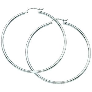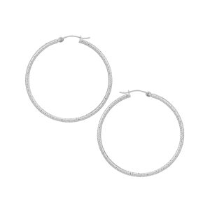 14K White Gold 2X50mm Diamond Cut Textured Hoops