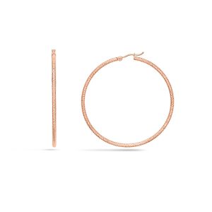 14K Rose Gold 2X50mm Diamond Cut Textured Hoops