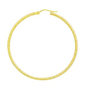 14K Yellow Gold 2X50mm Diamond Cut Textured Hoops