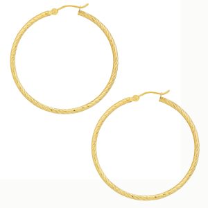 10K Yellow Gold 2X50mm Diamond Cut Textured Hoops