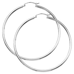 14K White Gold 2X60mm Diamond Cut Textured Hoops