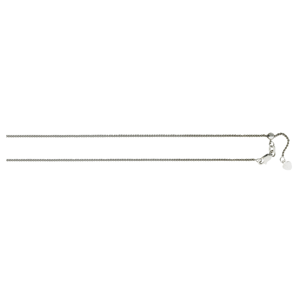 10K White Gold 1.0mm Adjustable Diamond Cut Round Wheat Chain