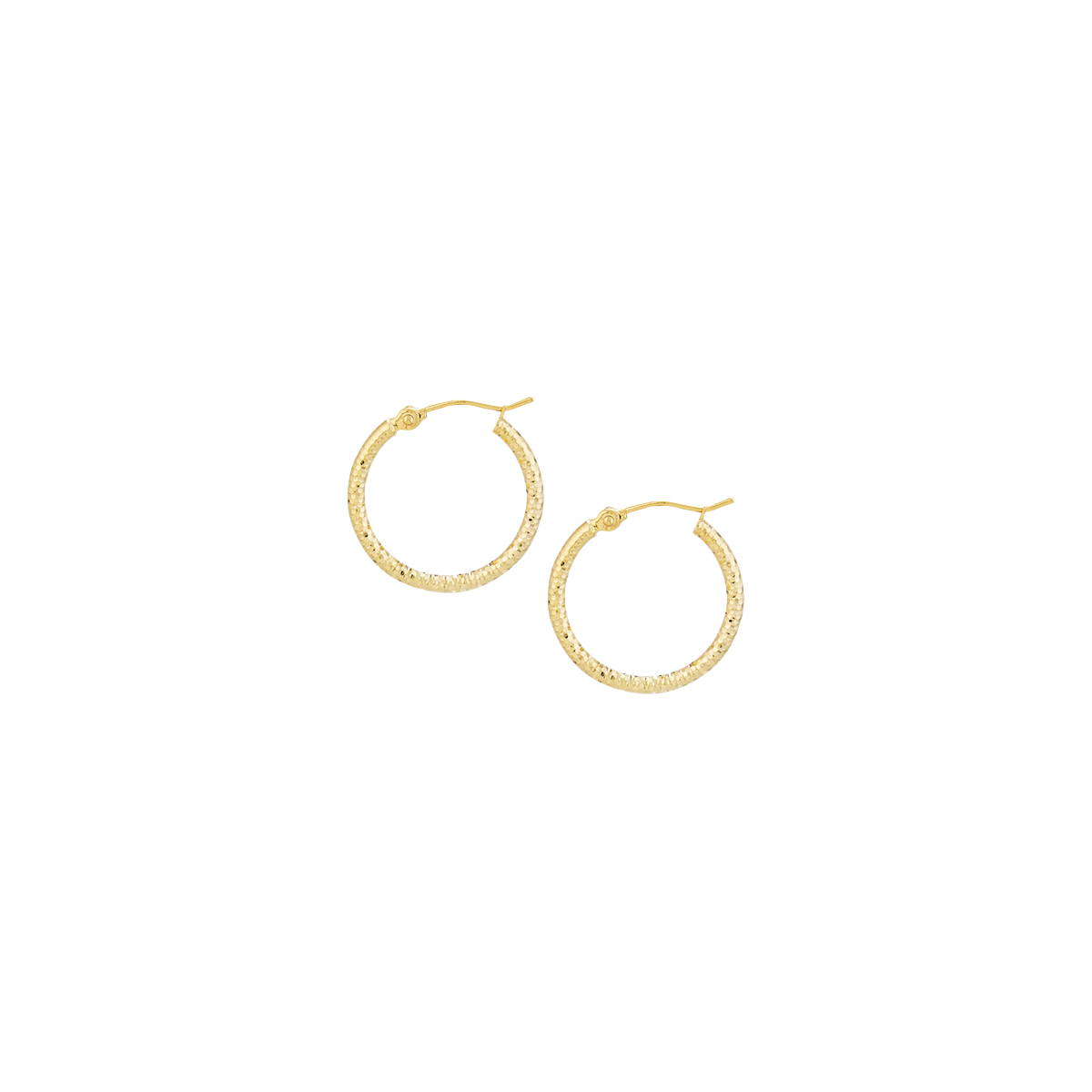 10K Yellow Gold 2X15mm Diamond Cut Textured Hoops