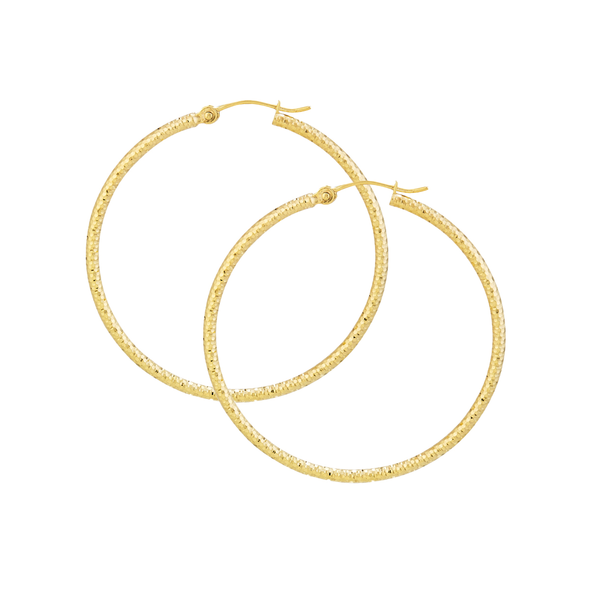 10K Yellow Gold 2X40mm Diamond Cut Textured Hoops