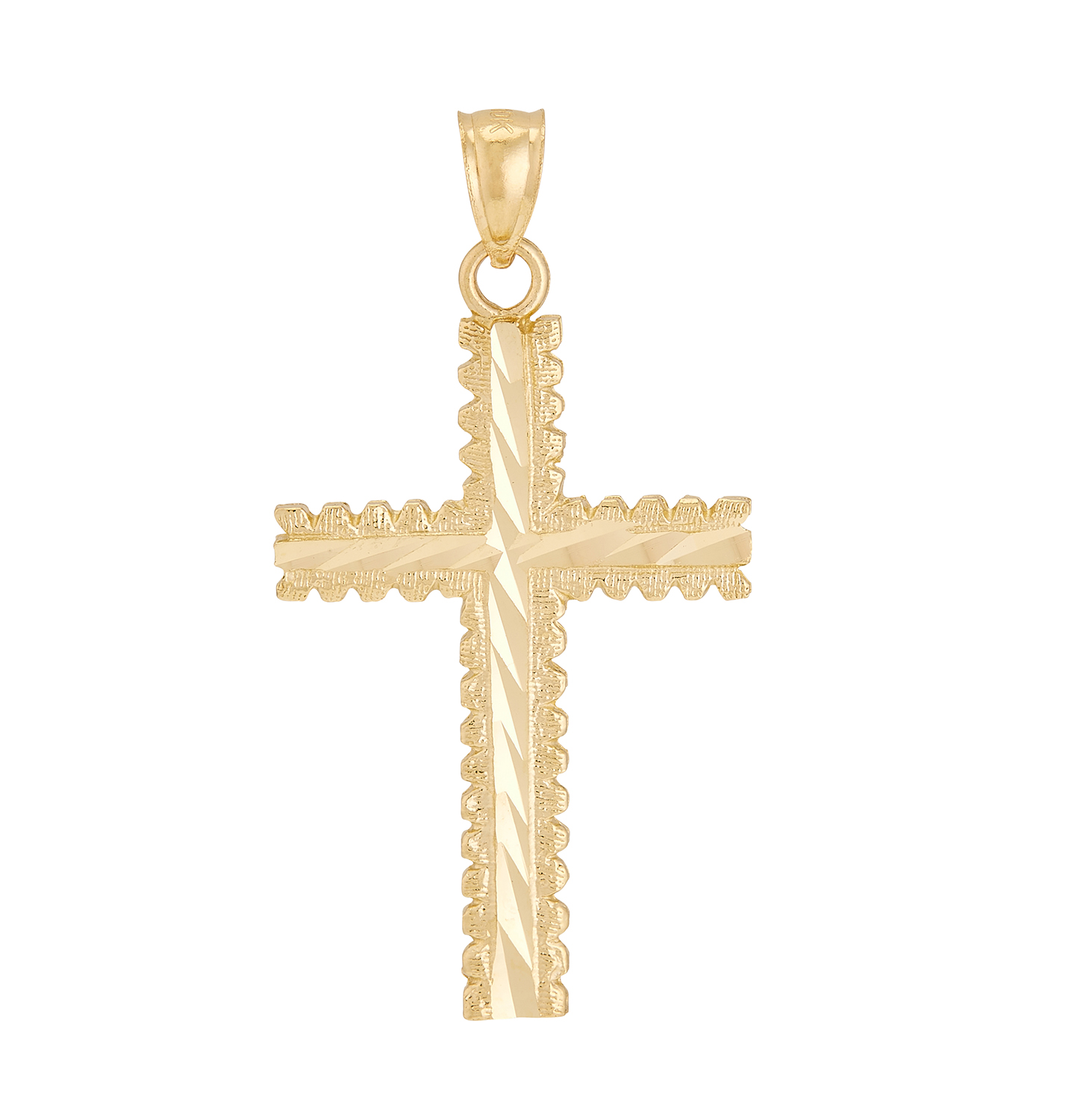 10K Yellow Gold Diamond Cut Scallop Edge Cross