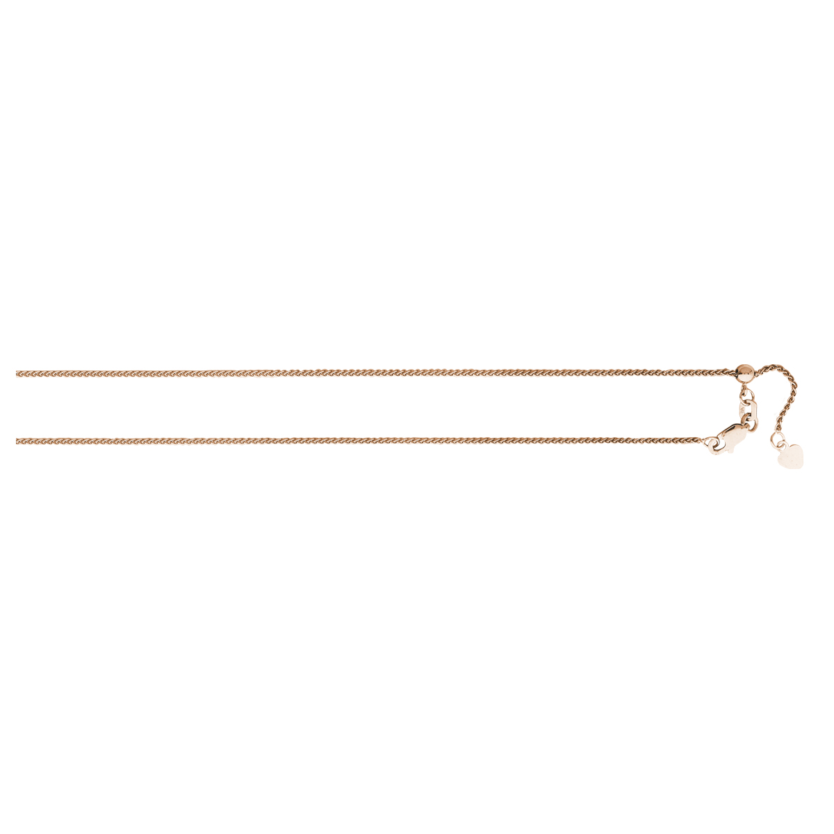 14K Rose Gold 1.2mm Adjustable Diamond Cut Round Wheat Chain
