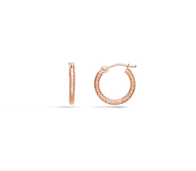 14K Rose Gold 2X20mm Diamond Cut Textured Hoops