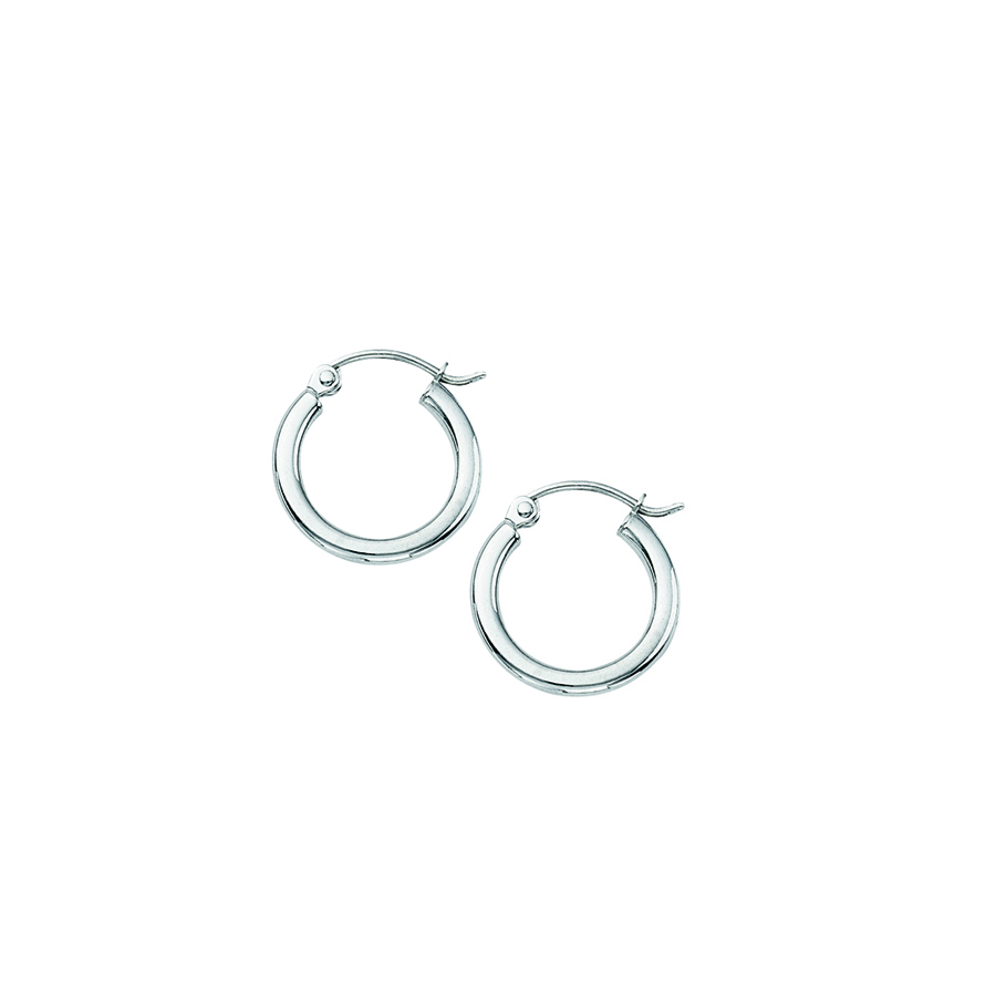14K White Gold 2X15mm Polished Hoops