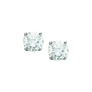 14K White Gold 3.0mm Basket Set Round CZ Stud- Post