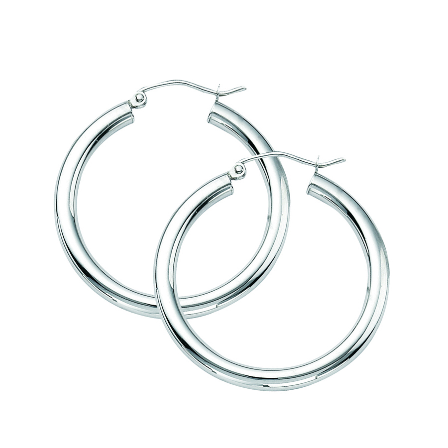 14K White Gold 3X30mm Polished Hoops