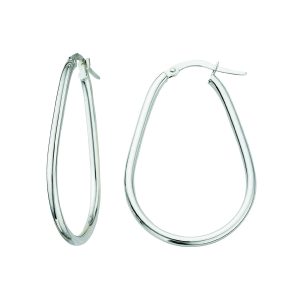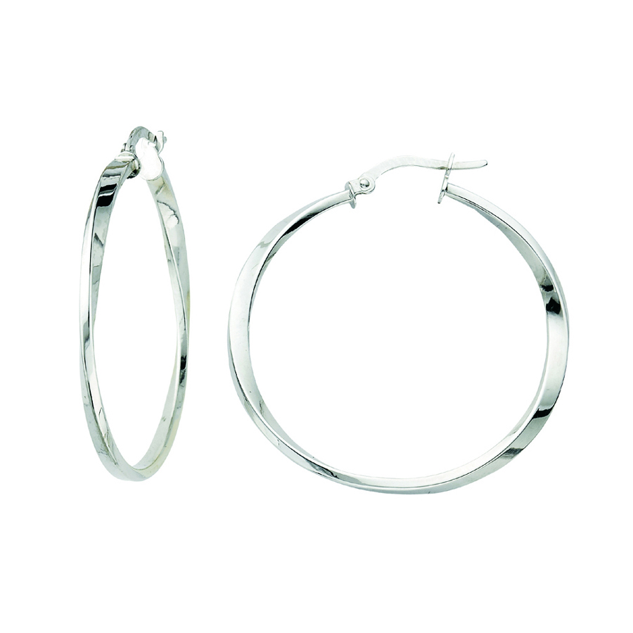 14K White Gold Italian Fancy Polished Twisted Hoops- Large