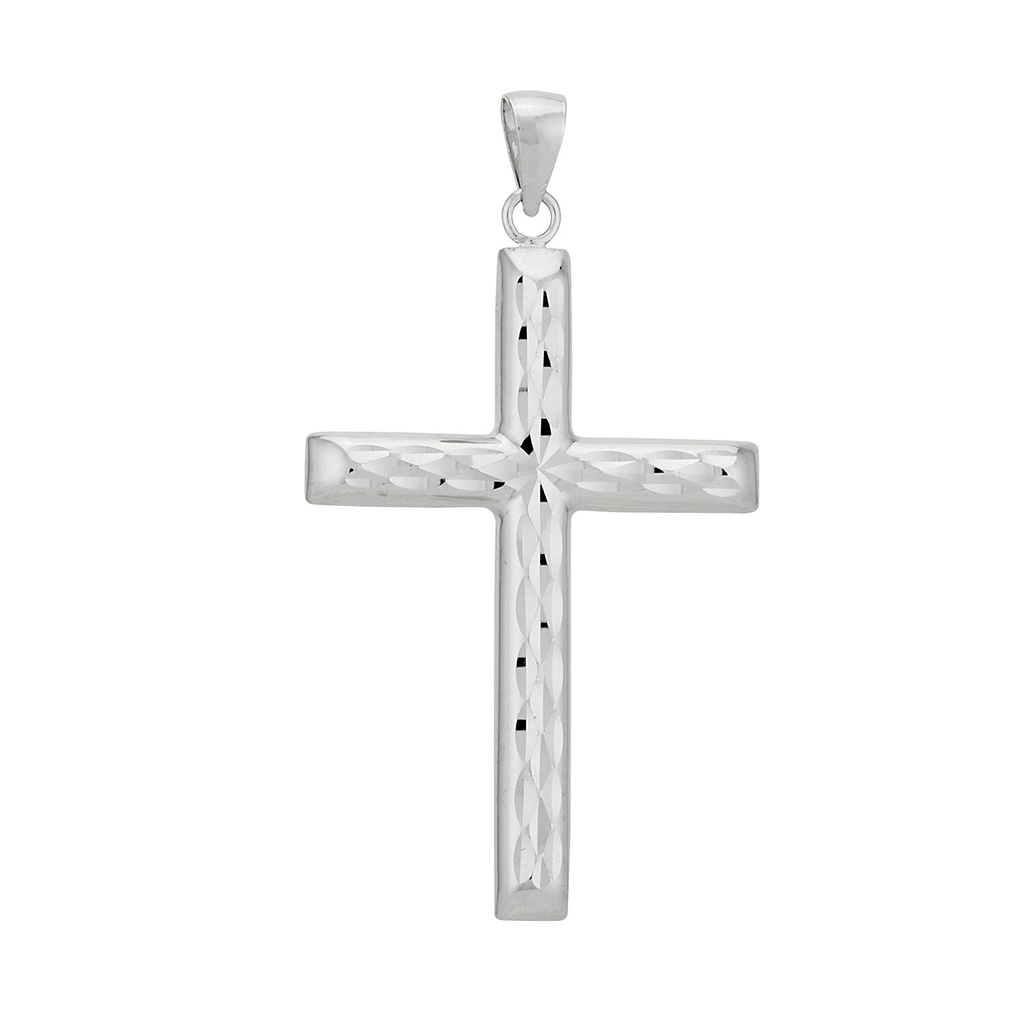 14K White Gold Large Diamond Cut/ Polished Reversible Cross
