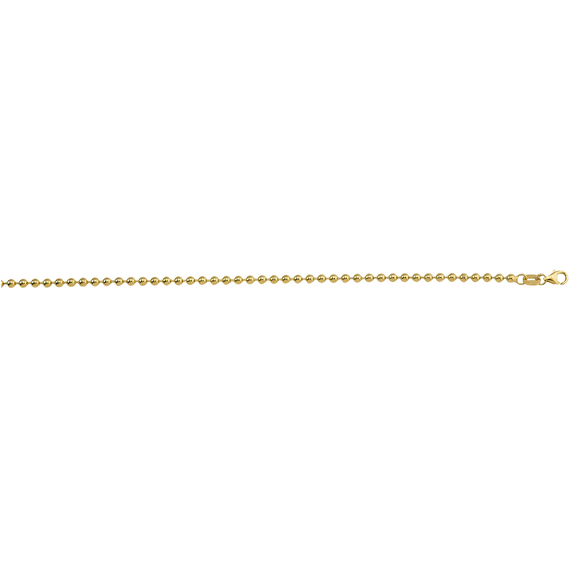 14K Yellow Gold 2.5mm Polished Ball (Military) Chain