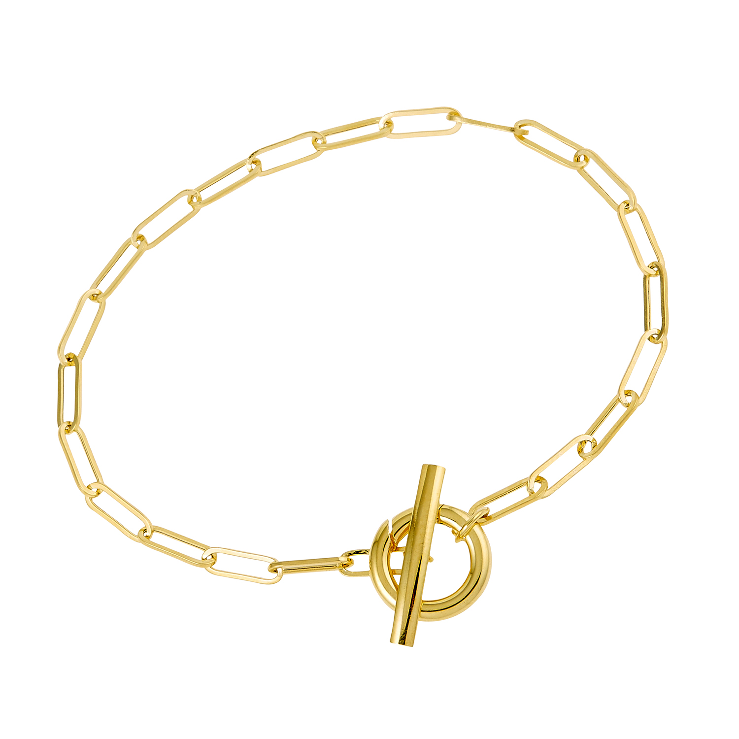 14K Yellow Gold 3.4mm Paperclip Toggle Bracelet with Hinged Clasp