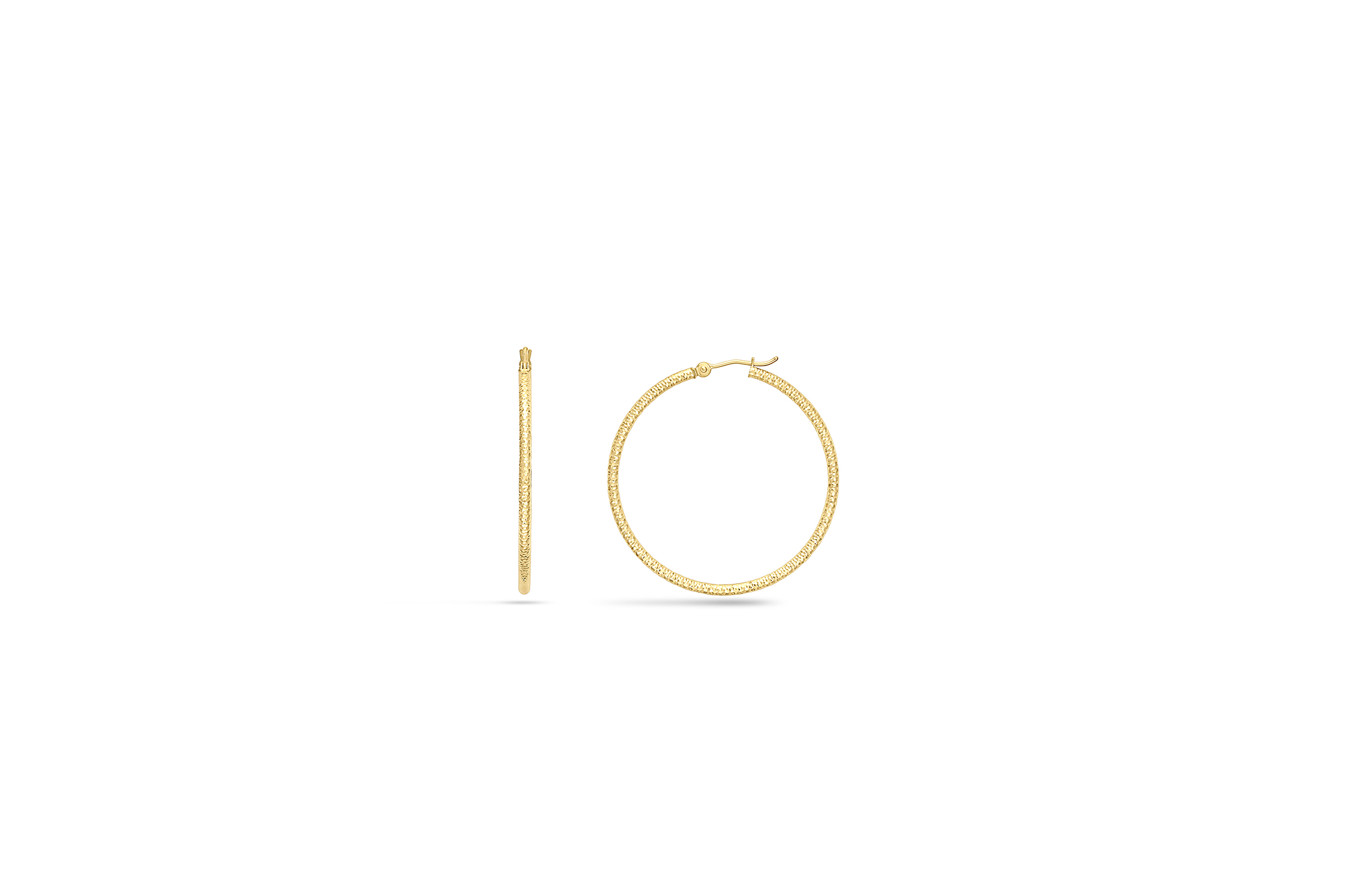 14K Yellow Gold 2X40mm Diamond Cut Textured Hoops