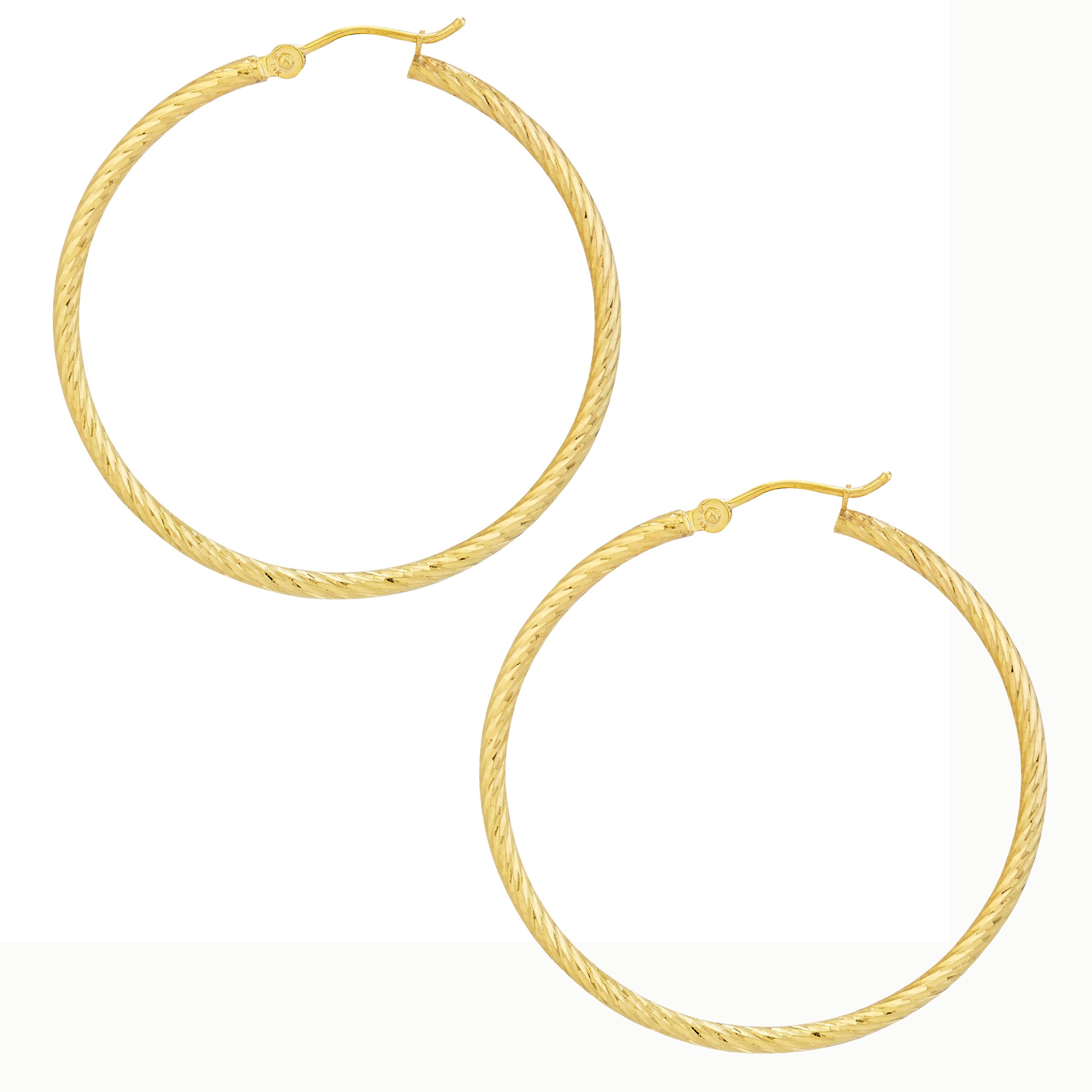 14K Yellow Gold 2X50mm Diamond Cut Twisted Hoops