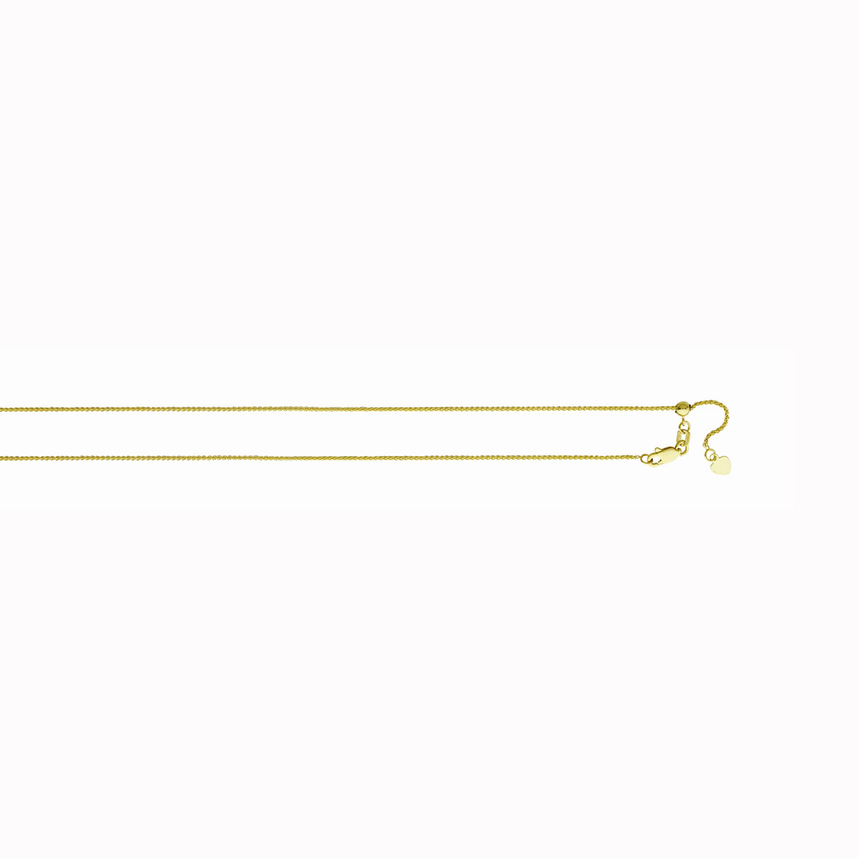 14K Yellow Gold 0.9mm Adjustable Diamond Cut Round Wheat Chain