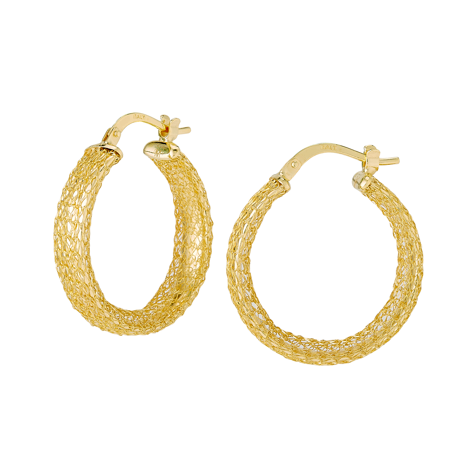 14K Yellow Gold Braided Mesh Round Hoops - 20mm
