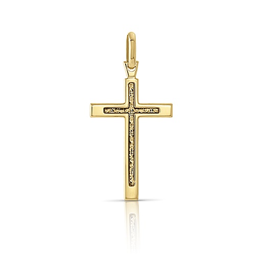 14K Yellow Gold Cross with Yellow Diamond Cut Inlay
