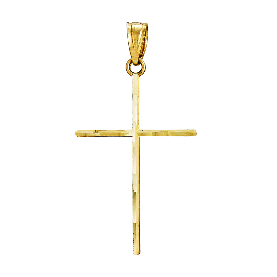 14K Yellow Gold Diamond Cut Cross