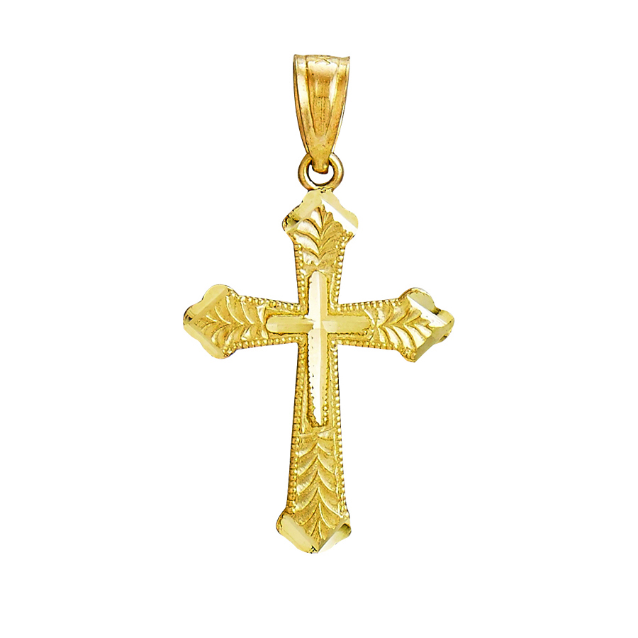 14K Yellow Gold Diamond Cut Fancy Edge Cross