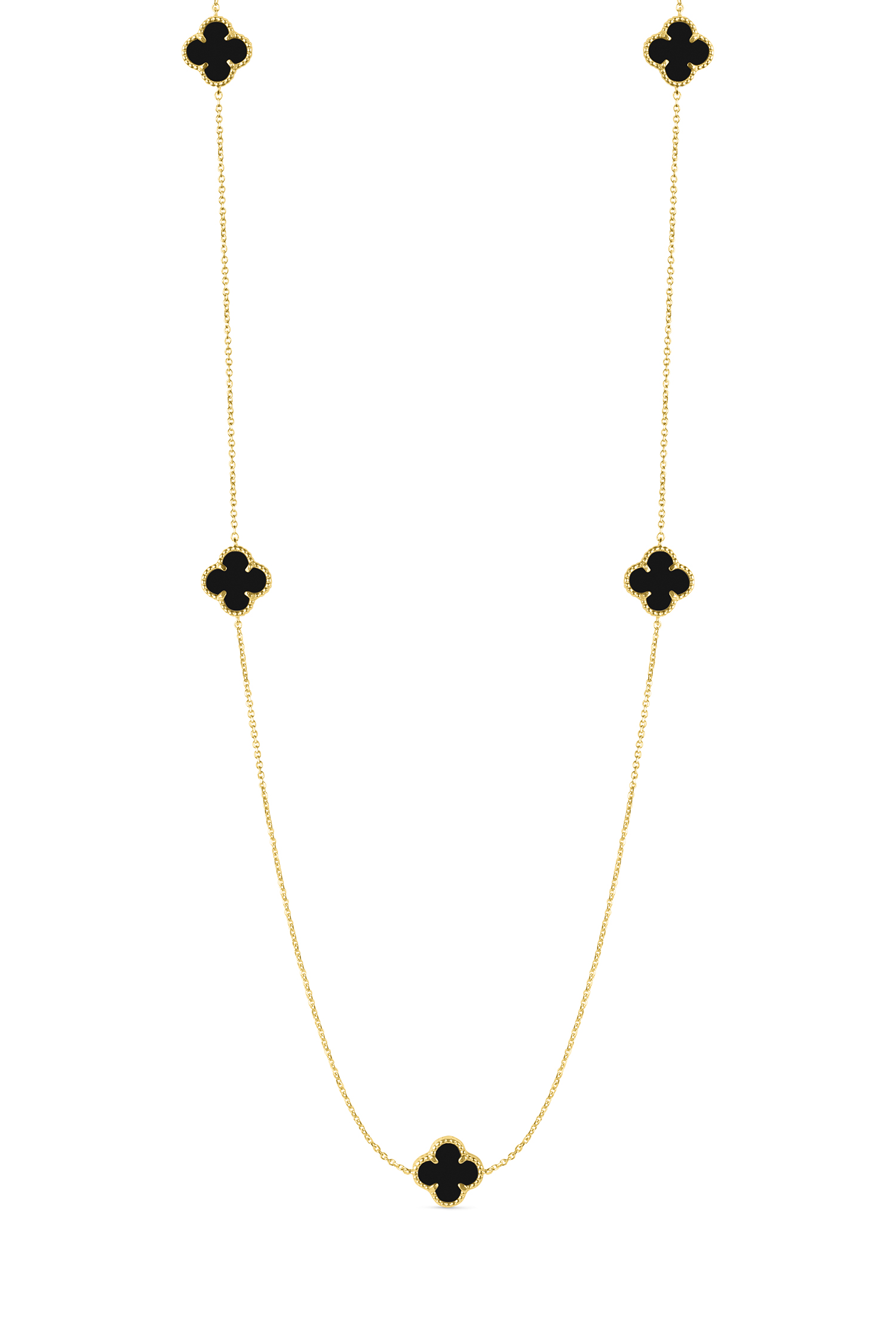 14K Yellow Gold Italian Black Onyx Multi Clover Necklace with 16"-18" extender