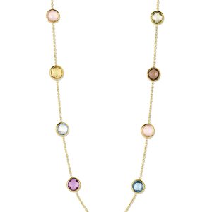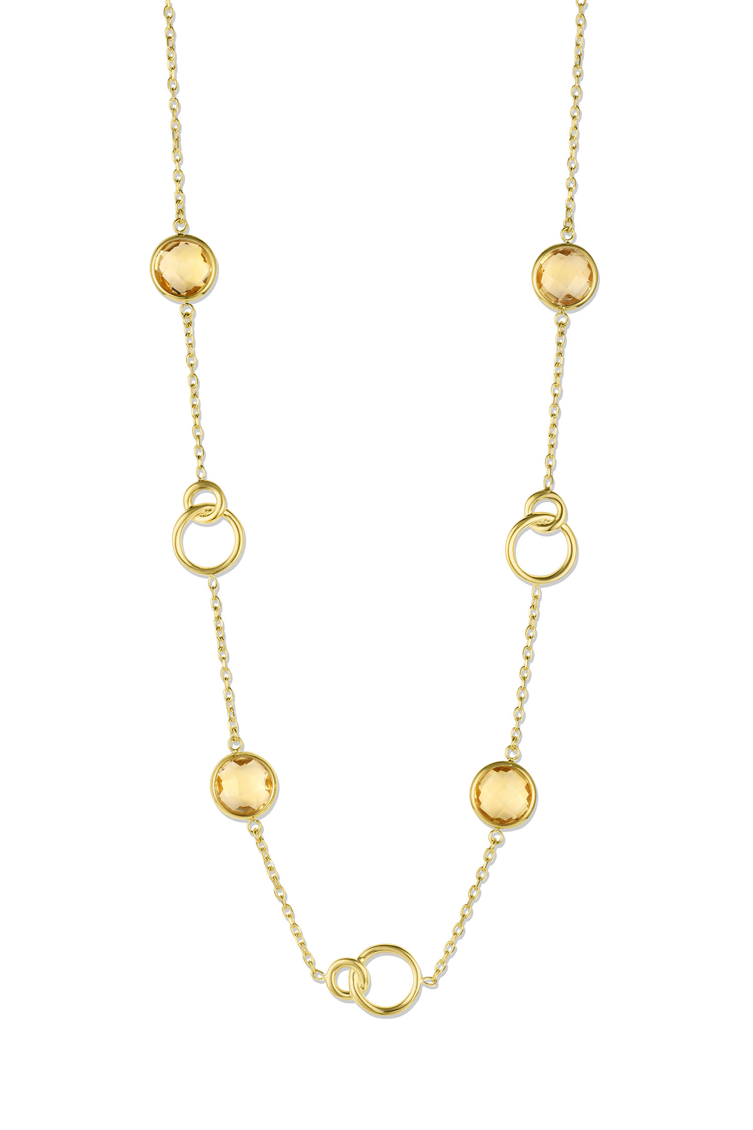 14K Yellow Gold Italian Genuine Stone Necklace with Infinity Rings and Citrine